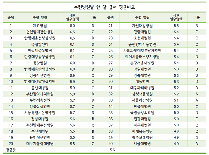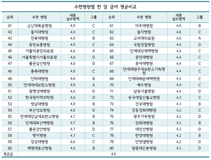그런데 제일 많이 주는 삼성서울병원과 제일 적게 주는 세브란스병원의 경우 20만원 차이가 안나기 때문에 빅5병원에 중 수련받을 병원을 고를 때 유의미한 차이가 있다고 생각하지 않습니다