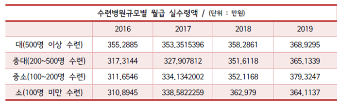 그러면 우리가 일반적으로 생각하듯이 큰 병원일수록 월급을 많이 줄까요?