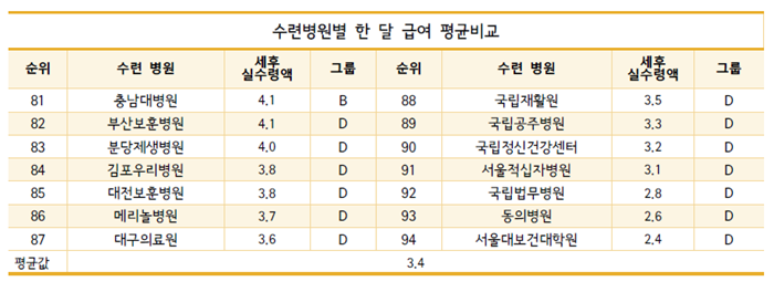 마지막으로 각 병원 별 레지던트 월급 정보를 첨부합니다